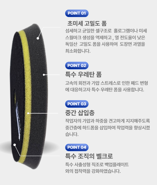 ・ 폼 타입으로 폴리셔의 움직임에 의한 비틀림 진동을 완화시켜 도장면에 대한 마찰을 컨트롤