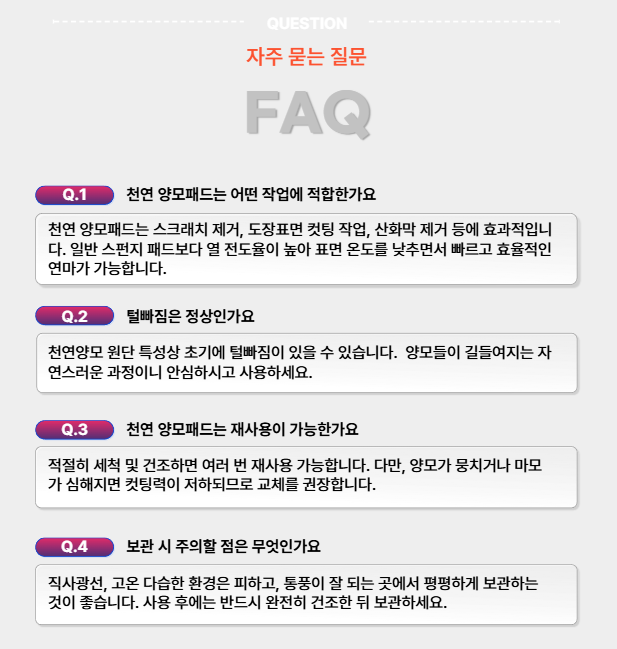 4. 폴리셔의 종류 및 작업자의 숙련도, 컴파운드에 따라 연마 효율은 다를 수 있습니다.